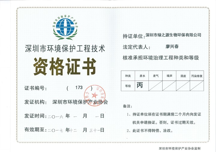 深圳市綠之源生物環(huán)保有限公司成立十余年,是經(jīng)深圳市環(huán)保局批準(zhǔn)的具有專項(xiàng)環(huán)保工程設(shè)計(jì)資質(zhì)的企業(yè),深圳市高新技術(shù)企業(yè)。公司從創(chuàng)立初期的水處理藥劑、水處理設(shè)備的研發(fā),逐步成長(zhǎng)為環(huán)保類綜合性服務(wù)的企業(yè),目前年?duì)I業(yè)額約三千萬(wàn),集水處理藥劑研發(fā),工業(yè)廢水、廢氣及農(nóng)村生活污水處理等環(huán)保工程的設(shè)計(jì)、安裝、調(diào)試、運(yùn)營(yíng)、技術(shù)咨詢一條龍服務(wù),為珠三角眾多企業(yè)服務(wù),解決相關(guān)環(huán)保難題,并取得了良好的社會(huì)效益和環(huán)境效益。